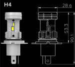 Possui as mesmas dimensões de uma lâmpada halógena.